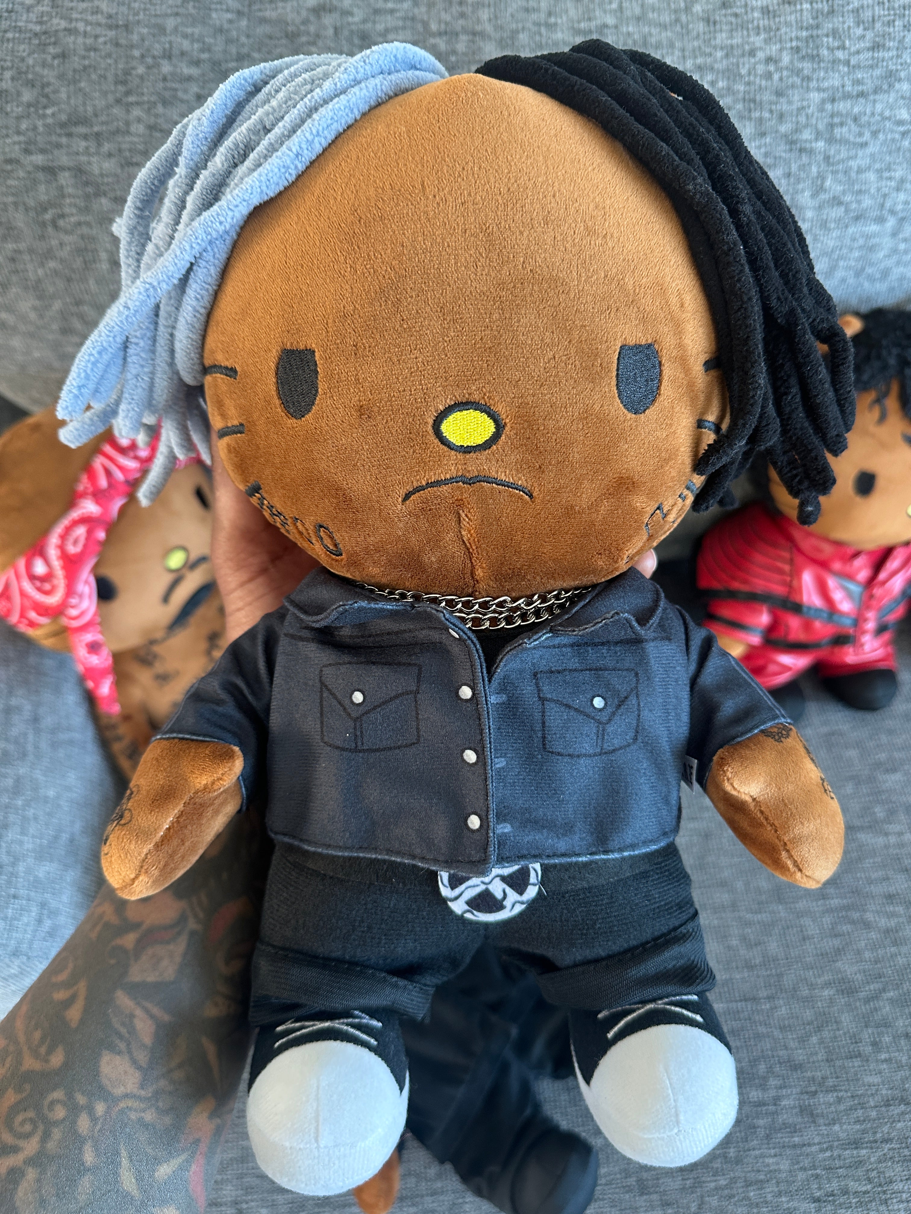 Each plush features detailed embroidered tattoos and a unique street-inspired design, making it a standout collectible piece.